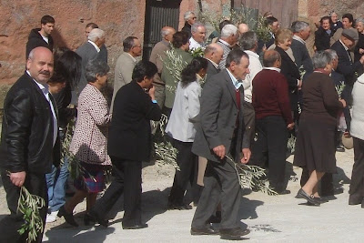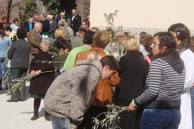 No largo, junto ao lar dos idosos, juntou-se muito povo à espera do senhor padre Delmino para a bênção dos ramos.