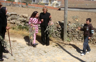 A visão de crianças segurando ramos de oliveira, loureiro e alecrim, enfeitados com bolachas e rebuçados, trouxe-me à memória o Domingo de Ramos passado na aldeia onde nasci.