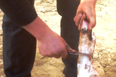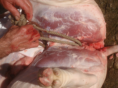 Desde criança que não via uma matança do reco. Causou-me, por isso, alguma estranheza, ver a pele do animal ser raspada com enxada.