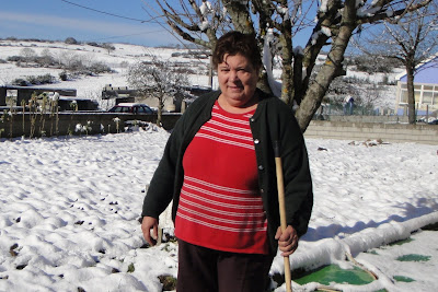 No alto das Poulinhas, apesar do frio intenso, encontrei diversos moradores a trabalhar ao ar livre.