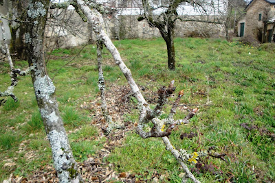 Mas, por aqui, nas aldeias da montanha, ainda não se veem árvores frutíferas floridas como na Veiga de Chaves.Apesar de nesta época os dias ensolarados alternarem com chuva, frio e geadas, não é para a Páscoa de 2010 que botões de cerejeiras, pereiras e macieiras vão desabrochar e florir.