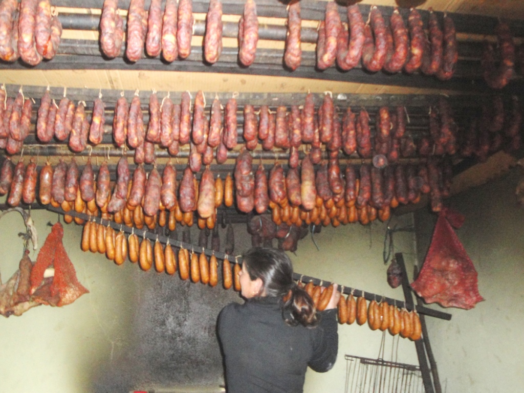 Há dias, provei um destes salpicões e confesso, sem exagero, que nunca outros me souberam tão bem. Já há vários anos que me habituei à excelente qualidade de alheiras, bucho, chouriças e salpicões feitos pela dona São. Este ano comprei-lhe um presunto do ano anterior e também o achei saboroso, sem sal em excesso. O único senão é a gordura a mais. Mas este é um problema cultural porque em Trás-os-Montes gosta-se que as cevas estejam bem gordas na altura da matança.