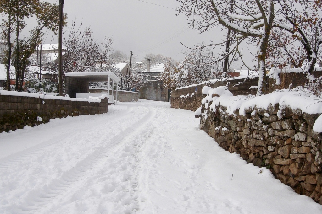 Na noite passada e no dia de hoje, a neve voltou, silenciosa e fria,a cobrir de branco as terras altas da raia transmontana.