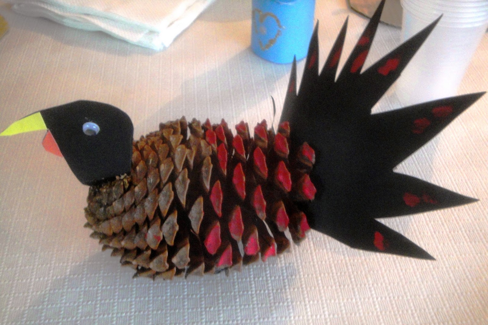 Também pude apreciar os trabalhos feitos pelos residentes, em que foram utilizadas pinhas e outros materiais.