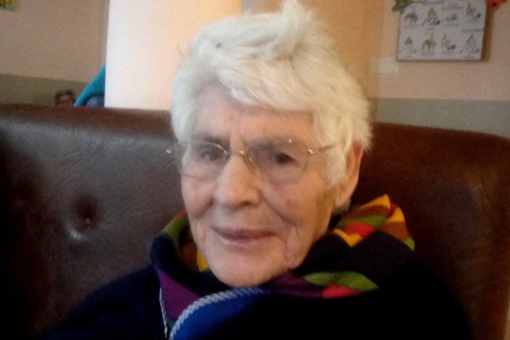E esta sorridente senhora é a dona Olinda Santos, de São Cornélio. É viúva e está há dois anos no lar. Em França tem três filhos, cinco netos e um bisneto. No Natal, com o apoio da animadora cultural, manda-lhes mensagens de boas festas.