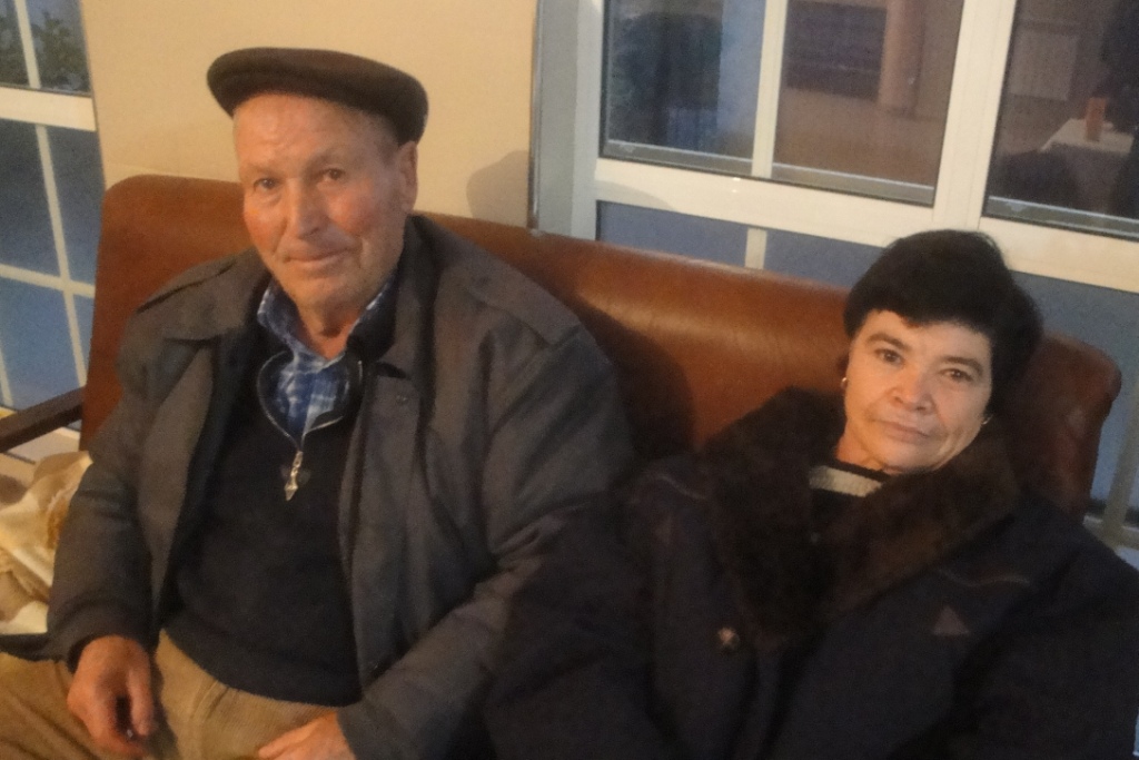 Senhor Américo e Júlia. Ele tem a esposa no lar há cinco anos, acamada. Hoje veio visitá-la e ficou para o magusto. A Júlia passa o dia no lar, mas à noite vai dormir a casa.