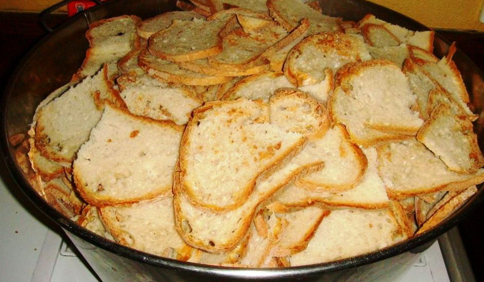 No dia anterior, o pão trigo, encomendado a uma padaria de São Pedro Velho, em Mirandela, especializada no fabrico de pão para alheiras, com pouco fermento, tinha sido cortado em fatias e guardado em alguidares.