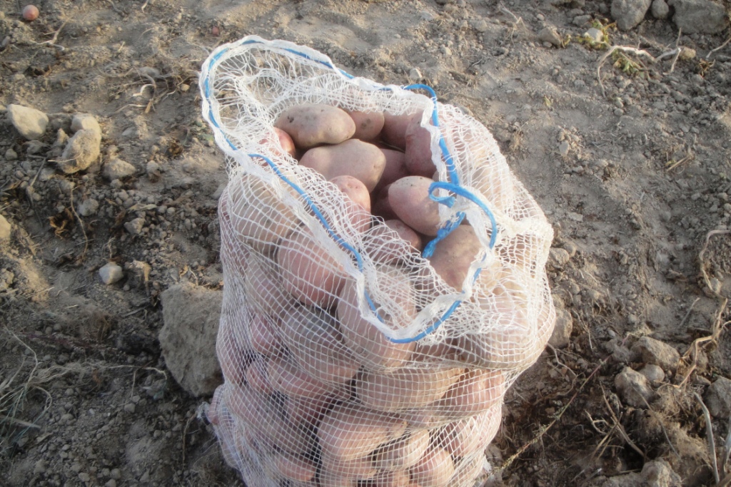 Sem o arrancador seria necessário uma manhã inteira para arrancar, apanhar e ensacar a produção de um batatal de pequena dimensão. Neste terreno, calculo que a produção terá ultrapassado 4 000 kg.