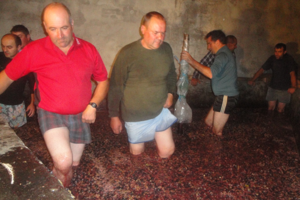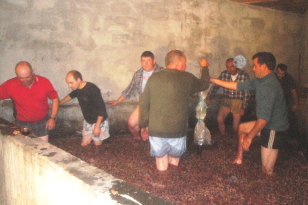 No passado dia 27 de setembro, no lagar do Gustavo, sete amigos, durante duas horas, pisaram uvas compradas em São Pedro Velho, concelho de Mirandela, para fazer 3 600 litros de vinho.