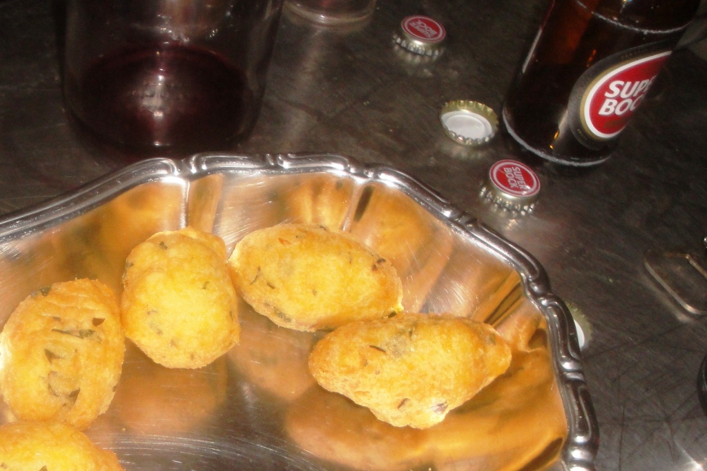 Durante a lagarada, a dona Maria mimoseou os "seus trabalhadores" com deliciosos pastéis de bacalhau.