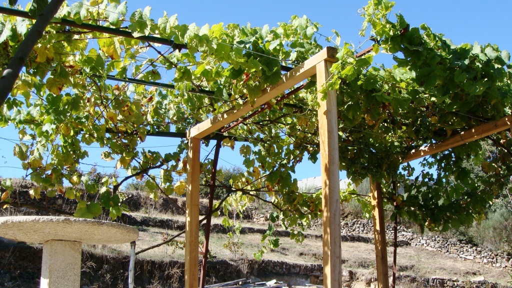 Não há vinhedos na freguesia mas há bastantes videiras de jardim, como em casa do Chico Melo.