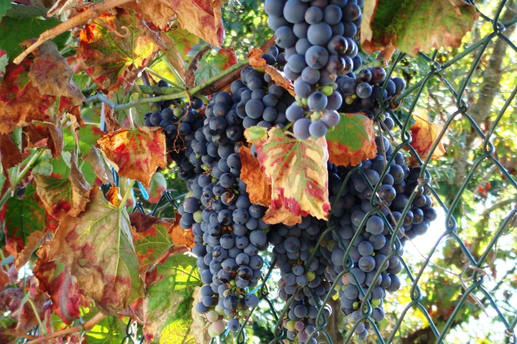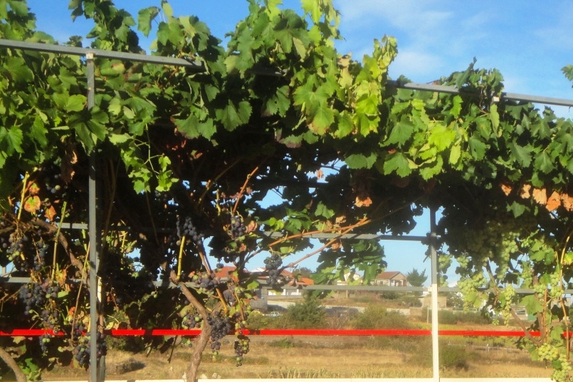 Cachos de uvas na Rua Camões. Há quem garanta que se faz vinho com elas.