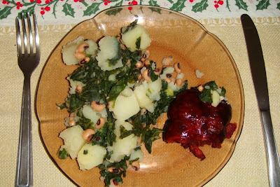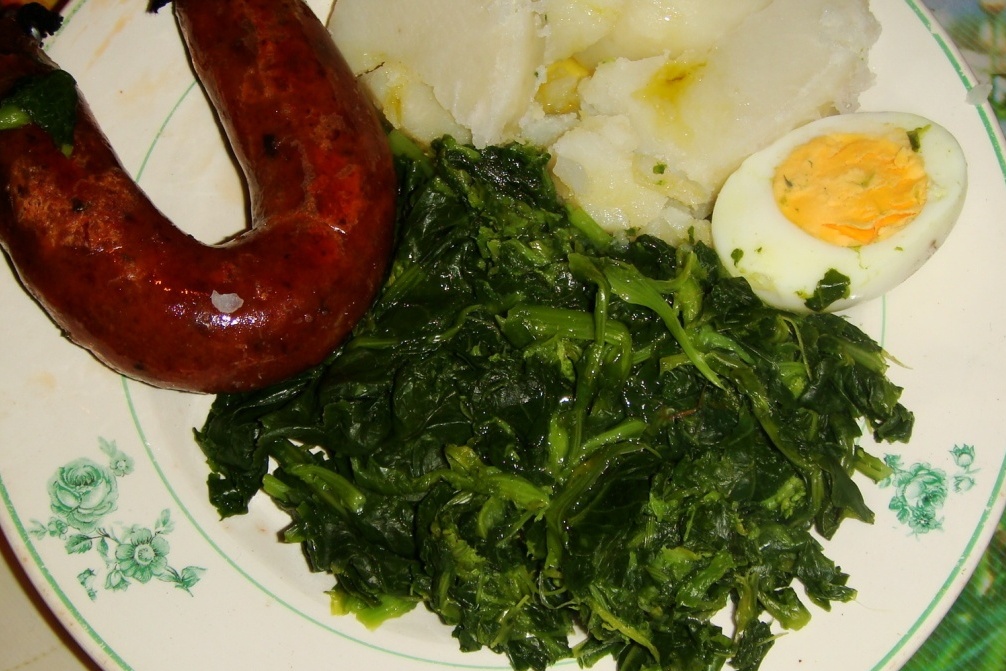 Chouriça de cabaça com batatas, nabiças e feijões chícharros. Bem bom!
