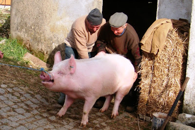 Enquanto o tempo de matanças vai continuar por janeiro fora - há quem mate duas vezes ou mais - o primeiro fumeiro já começa a ganhar cor nos lareiros, como neste do Nicolau.
