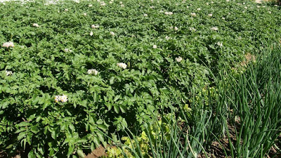 O verde da rama da batata e o branco da flor são um tonificante visual a quem percorre as ruas nesta altura.