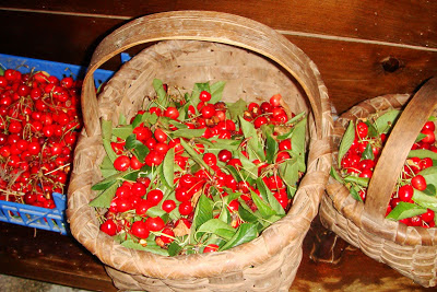 Hoje colhi as cerejas. Das cerdeiras do quintal só uma é que carregou bem.