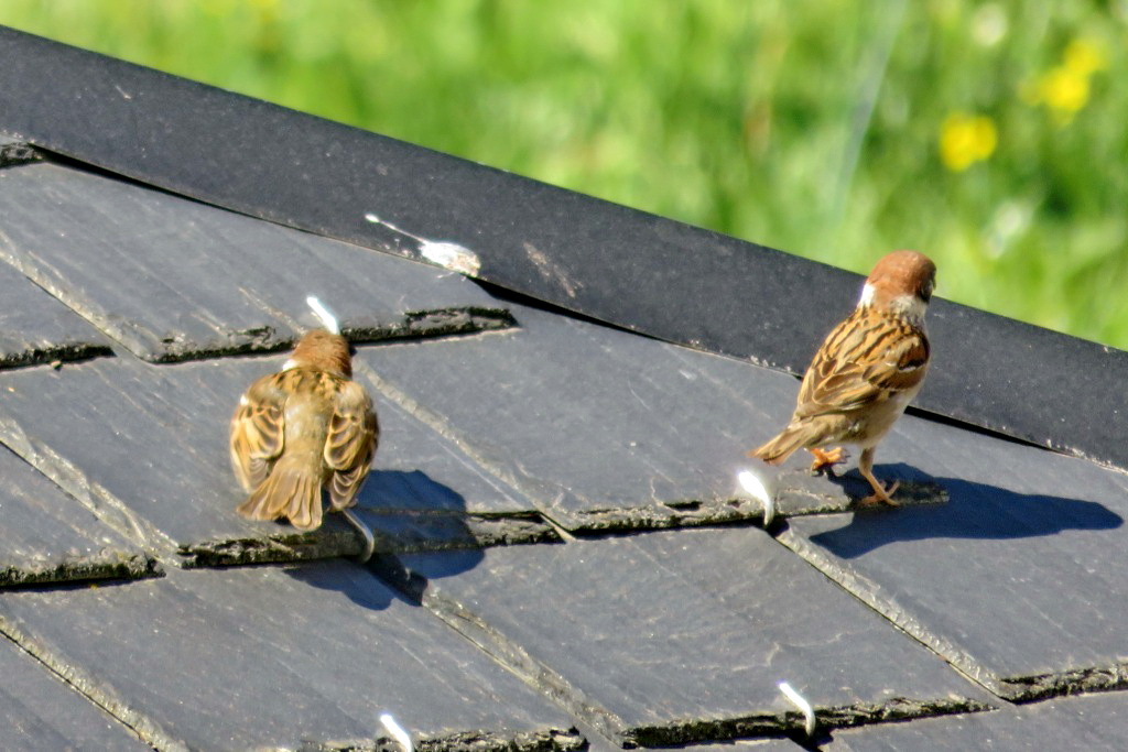 Ouvindo a mamã passarinha chamar por ele, levantou novo voo e conseguiu chegar ao telhado.