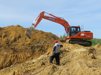 Os girassóis floridos eram pontinhos amarelos, no linhar do batatal.