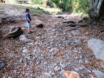 agosto deste ano! Sob a ponte do Mente, a jusante do qual, brotam águas termais no leito, não passa nem uma gota. Sem caudal mínimo, exigido por lei, a morte do rio truteiro é certa.