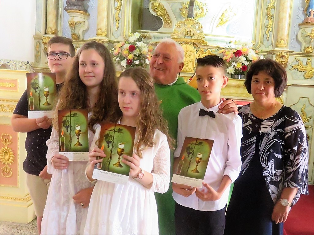 A Confirmação realizou-se no decorrer da missa dominical, na qual os meninos e meninas fizeram as leituras.