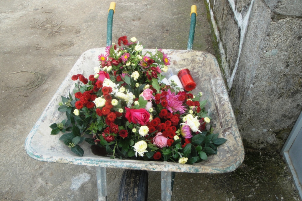 Para a Guida, muitas flores, anjos e velas; dos pais, irmão e amigos.