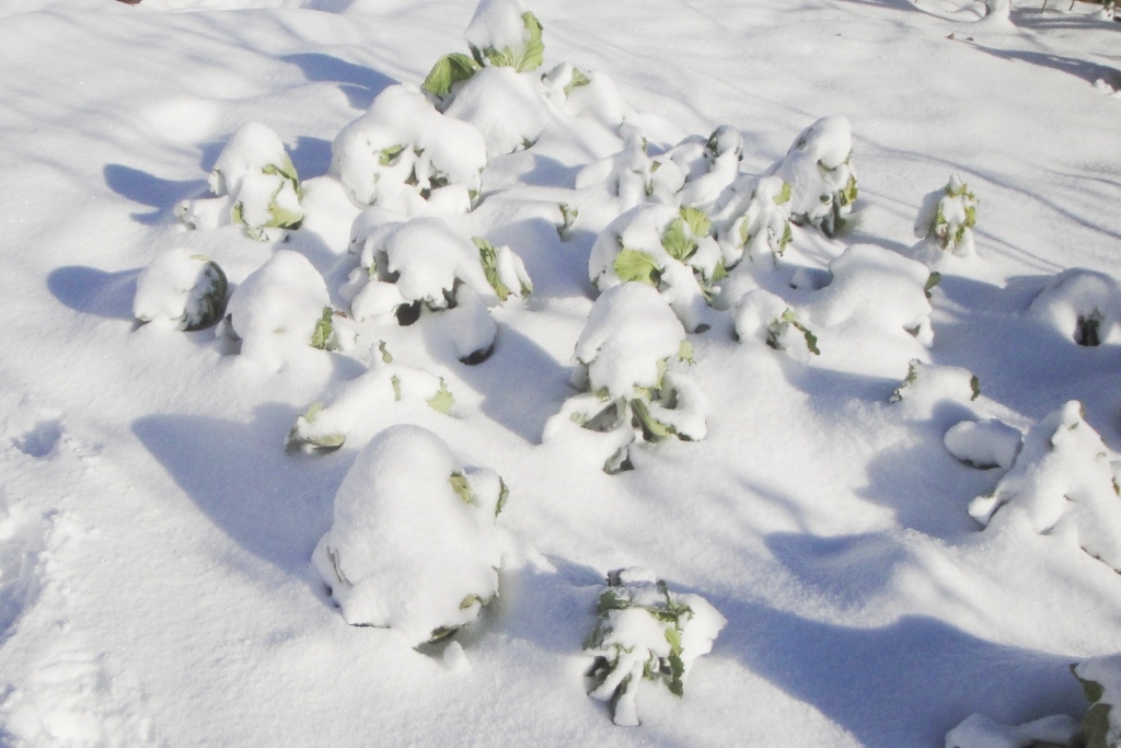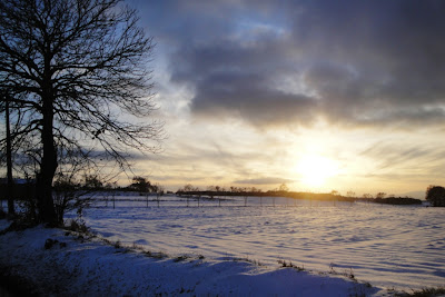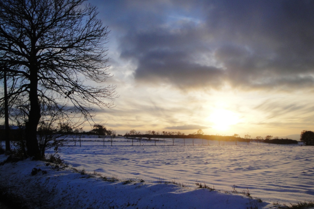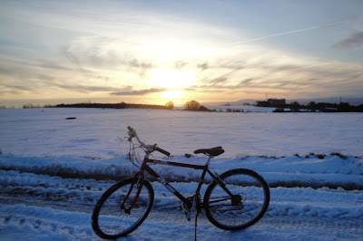 Ao anoitecer caiu um forte nevão em cima da neve gelada.