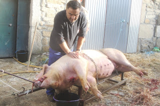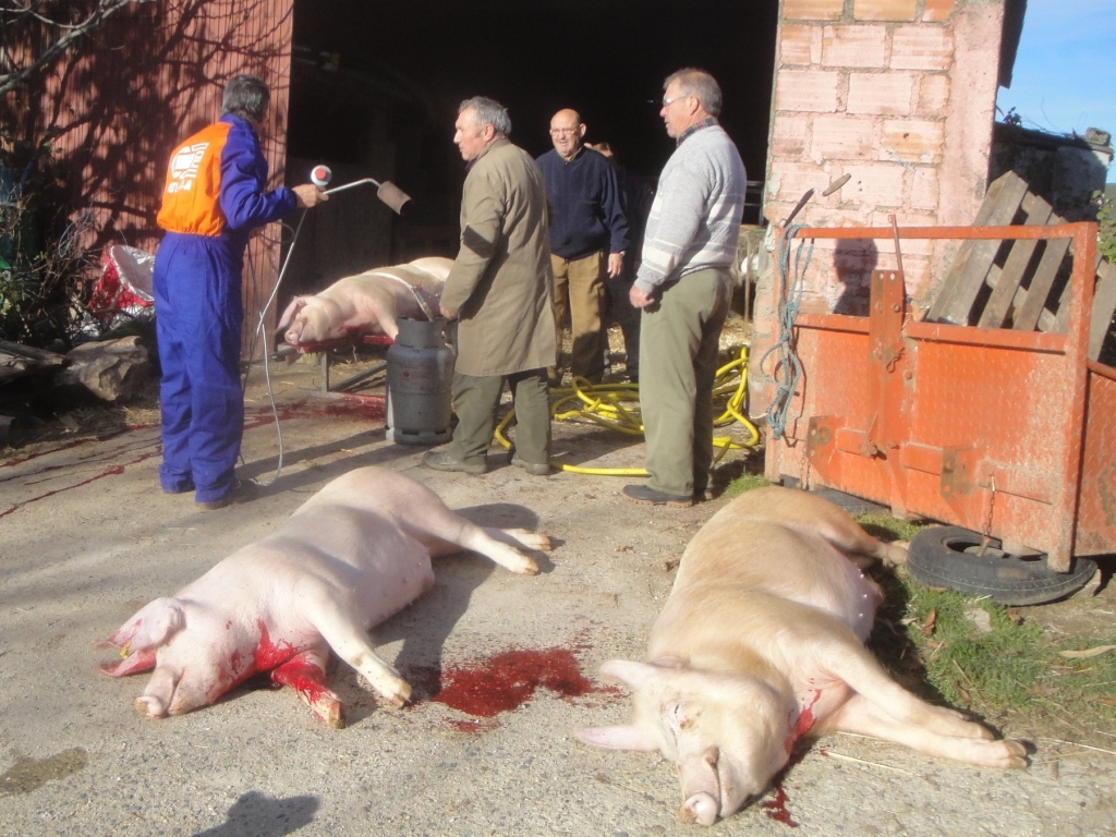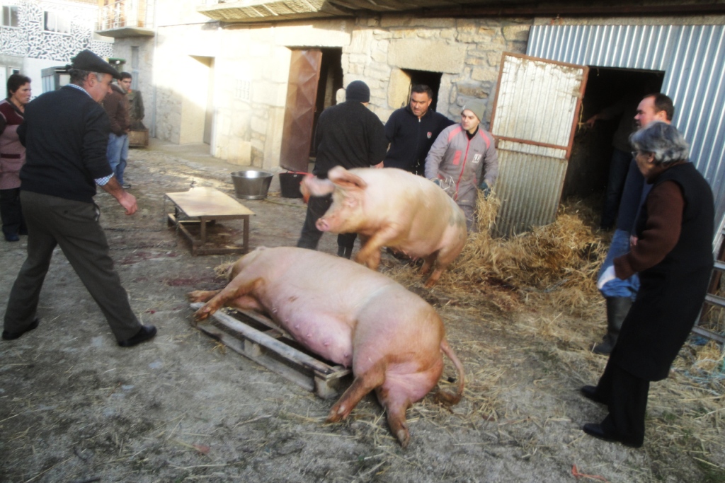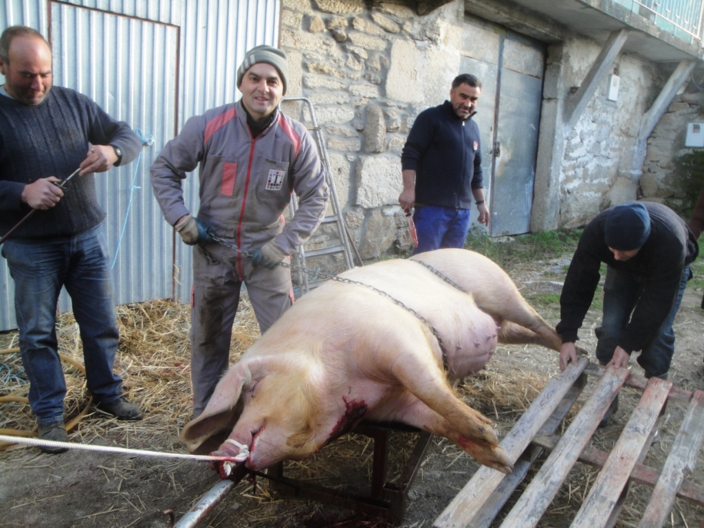 A temporada das matanças  costuma abrir por alturas de Santa Luzia,  mas este ano começou mais cedo, dia 27 de novembro. O senhor Zé, logo nesse dia, matou três cevas!  Duas semanas depois, o ritmo das matanças está no auge. Já se fizeram várias matanças em Argemil, São Cornélio e Travancas.