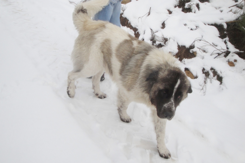 Cão de gado transmontano pertencente ao proprietário da vacaria.