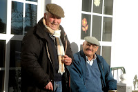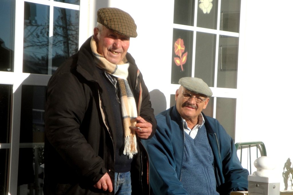 Utentes do Lar do Senhor dos Aflitos apanhando sol e satisfazendo o prazer de fumar.