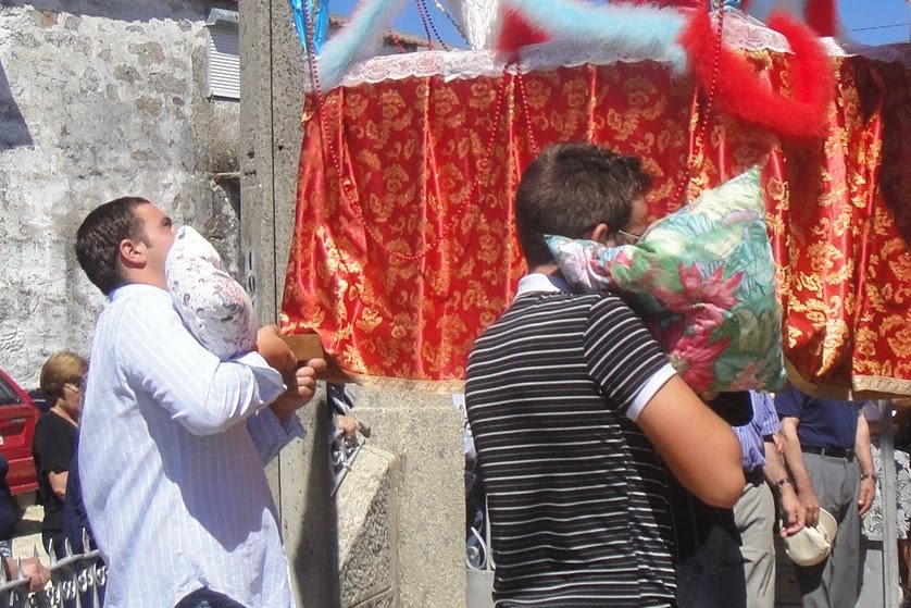 Os dois rapazes, com almofadas colocadas aos ombros, aguentaram bem o peso do andor. Ao vê-los, colaborantes nas ativdades religiosas ou participando nos trabalhos do campo, interrogo-me até quando vão ficar na aldeia.