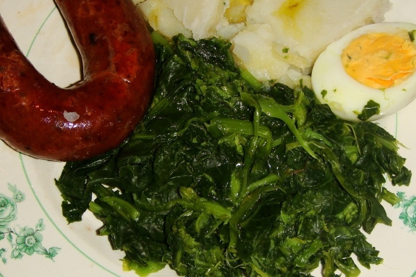 Espigos - grelos de couves - com feijões chícharos