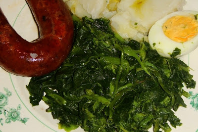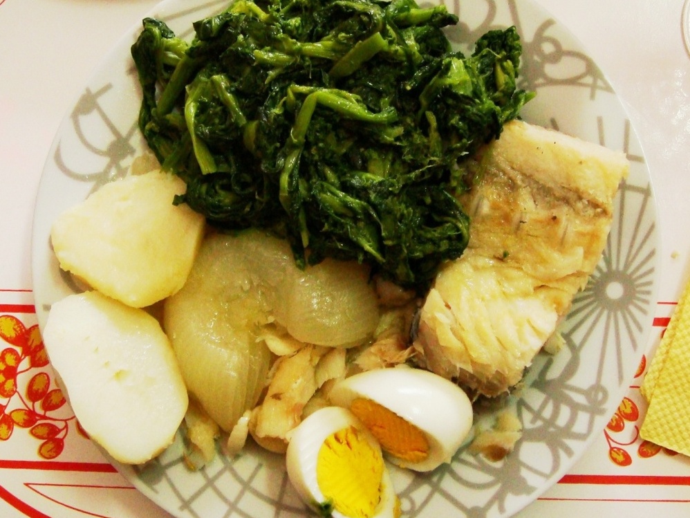 Grelos com bacalhau cozido