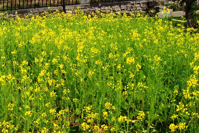 Canteiro de nabiças floridas.