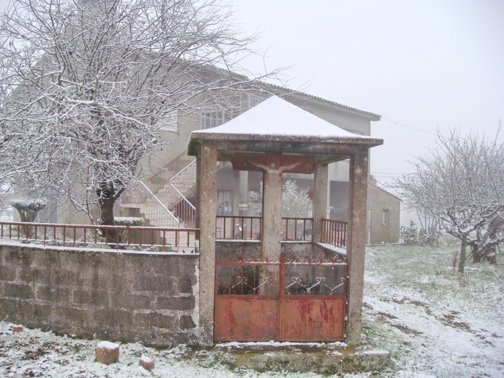 Ameixeira temporã em floração. Trata-se de uma variedade de ameixa vermelha, inapropriada para o clima frio de Travancas. Apesar da profusão de flores, os frutos não vingam, queimados pelas baixas temperaturas de abril e maio. Em vários anos só duas ameixas amaduraram!