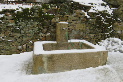 Bica e bebedouro do Rigueiro com ornamentação alusiva ao Inverno frio das terras altas da raia. Em Travancas há quatro destas bicas, tantas como as estações do ano!